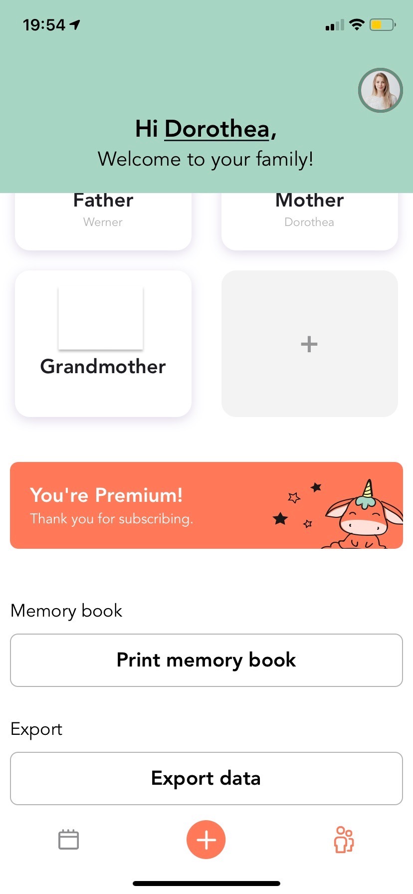 In the Juno app, go to the menu item with your family and scroll down to the bottom. Press "Print memory book" and you will automatically be logged into the printing software and can design your book: